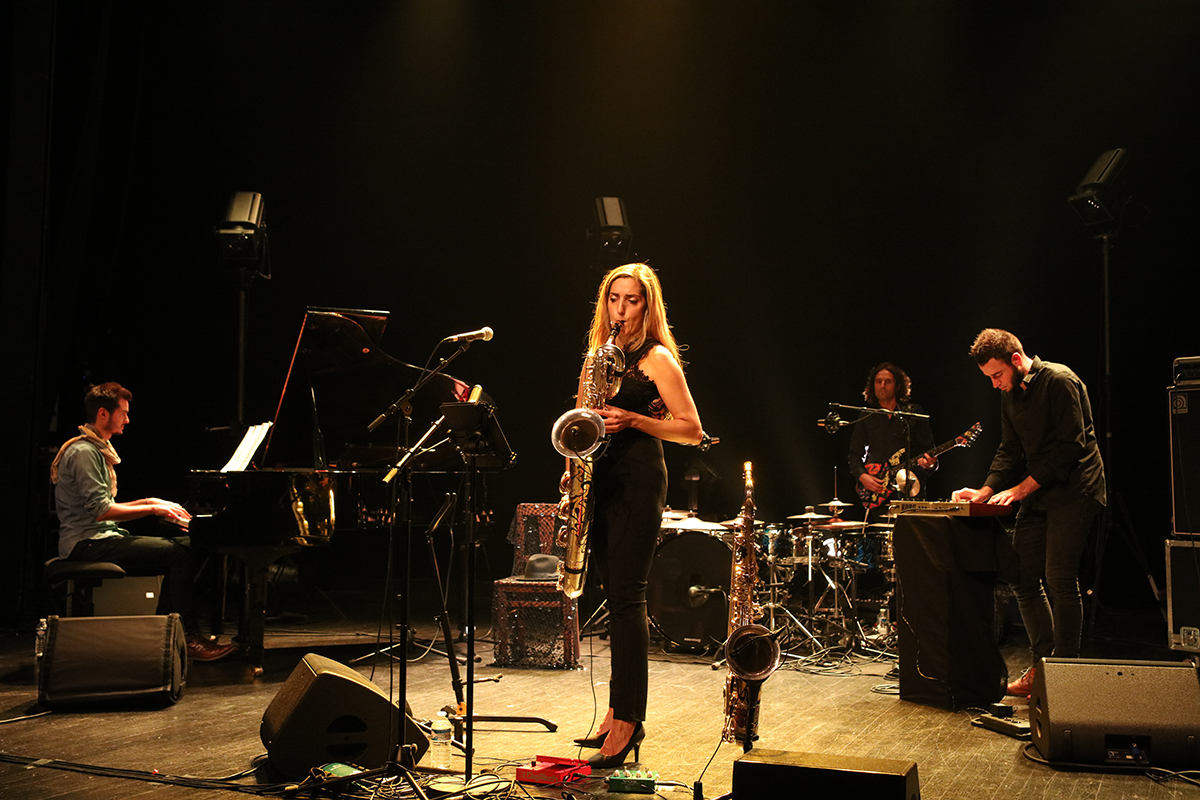 La beauté surgit parfois sans crier gare. Sans que l’on y soit tout à fait préparé, sans que l’on ait le temps de complètement l’appréhender. Ce soir, elle sourd des saxophones de l’une des trop rares instrumentistes féminines de jazz, Silvia Ribeiro Ferreira. Le quartet qu’elle mène présente à l’occasion de ce concert son premier album, Luziades, sorti courant septembre, fruit notamment de l’expression des racines portugaises de l’artiste limousine à travers le jazz. Jonglant entre le baryton et le tenor au gré des morceaux et des intonations, la saxophoniste nous invite à plusieurs reprises à la suivre, à découvrir sa profondeur et ses inspirations. Dès la courte introduction au baryton, une puissante charge émotionnelle s’abat sur nous, les notes nous atteignent immédiatement par leur élégante sobriété. Et ces frissons des premiers instants ne s’estomperont que tard dans la nuit, bien après la tombée du rideau, survenue beaucoup trop tôt.