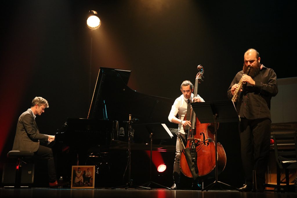 Le trio continue son exploration avec Roll em, un stride de Mary Lou Williams qu’Edouard Ferlet débute au piano droit, forcément, et qui permet à Simon Tailleu de parcourir frénétiquement sa contrebasse. Les corps s’agitent, la tête part dans ce fameux mouvement incontrôlé que tout fan de jazz n’a un jour où l’autre pas été capable de réprimer, et les semelles battent la moquette du grand théâtre à toute vitesse. Ferlet n’échappe quant à lui pas à sa réputation d’improvisateur hors pair et, sur un dernier Central Park West, peint un de ses chefs d’œuvre qui reste ancré dans nos imaginaires des décennies durant.