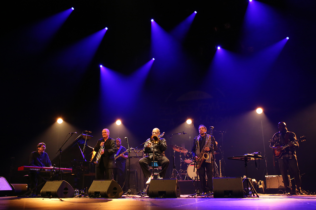 Encore une fois aujourd’hui, je n’ai qu’à pénétrer dans l’Opéra de Limoges, prendre place, et attendre sagement que l’on vienne chercher mes sentiments. Dans un registre que je connais parfaitement mais dont je me suis éloigné avec le temps, Fred Wesley et ses New JB’s entraînent le public avec eux pour la dernière fête du festival. Au menu, des grands classiques comme Gonna Have a Funky Good Time ou Get on the good foot, des machines à lever les foules comme Pass the peas auxquelles je ne suis pas insensible, et une énergie débordante de chaleur.