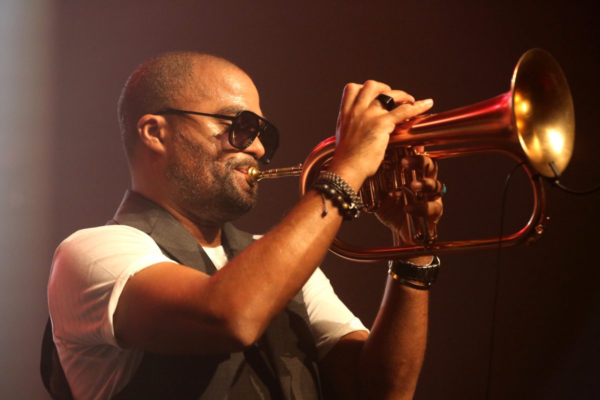 Et ainsi, tout au long de la soirée, les petites bombes jazz funk s’enchaînent, et la température grimpe de plus en plus. Le maître de cérémonie harangue, joue, mais n’en oublie pas pour autant ses cuivres. Qu’il soit au bugle ou à la trompette, il apporte son son aux réjouissances. Et c’est bien grâce à cela que l’on passe de l’attroupement sympathique à la communion fiévreuse. La capacité du trompettiste à aller chercher ses complices, à leur donner ce supplément d’âme, à se lier à eux semble instinctive, et ajoute encore à