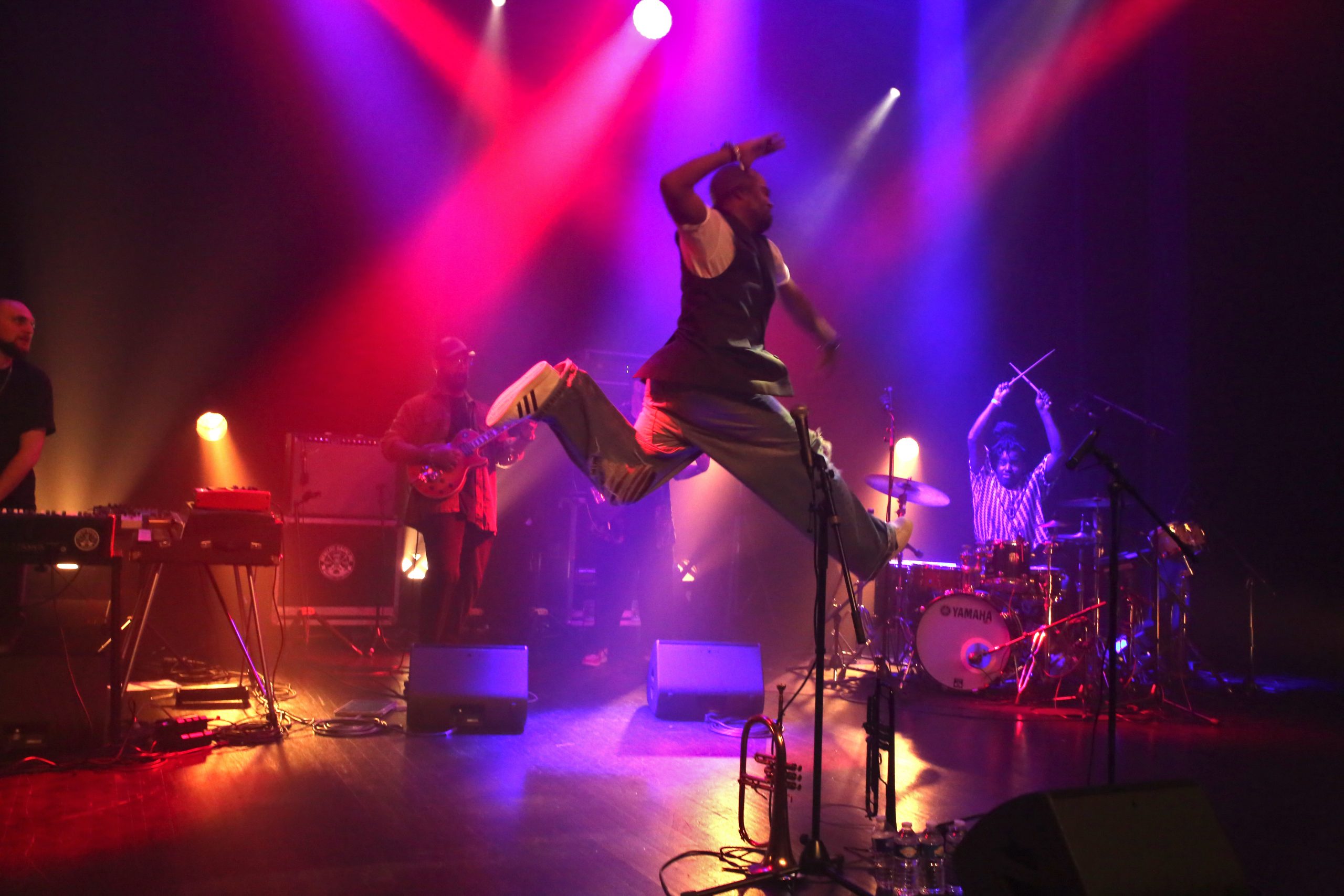 Le centre culturel Jean Gagnant se mue très rapidement en ce lieu de fête. La salle aux confortables fauteuils crée forcément une barrière de convention entre l’artiste et son public, mais le groupe s’emploie ardemment à la briser. En d’autres circonstances, j’imagine facilement un joyeux bordel dans lequel tout le monde finit par venir danser sur scène pour communier, bambocher.